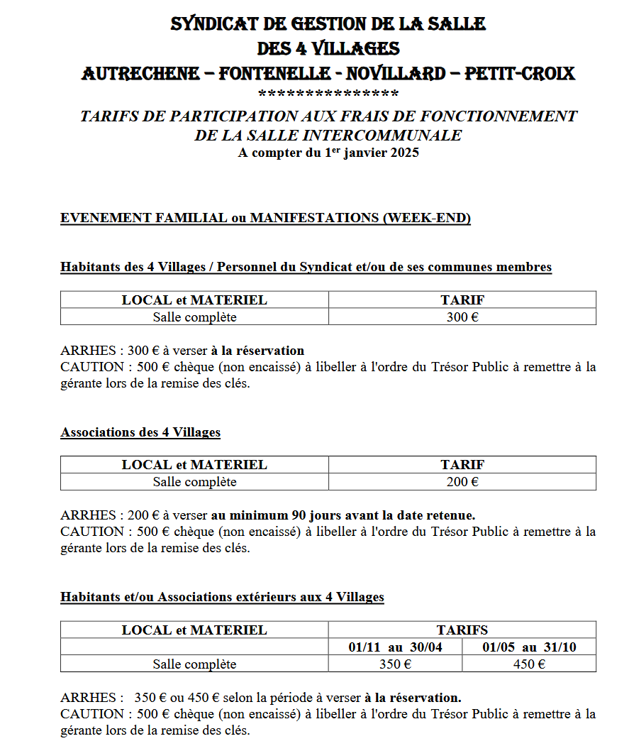 Depuis le 29 avril 2016, Monsieur le préfet a accepté l’adhésion de notre Commune au Syndicat de la salle intercommunale à Novillard.
